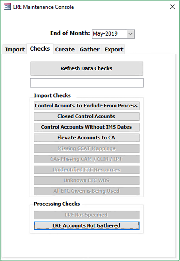 September 2018 – The Latest Revised Estimate (LRE) Tool is a custom, offline software solution utilizing Microsoft Office. It was initially developed as a proof of concept to introduce automation to the client team’s estimation process. The standard is for managers to continually update their estimations for how much money an effort will take to complete. As the task progresses, they can adjust their estimates to reflect any under or overruns.